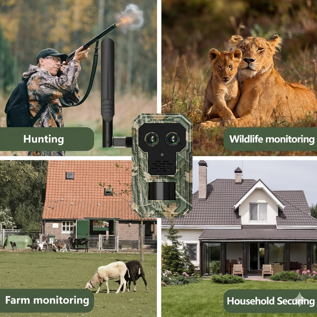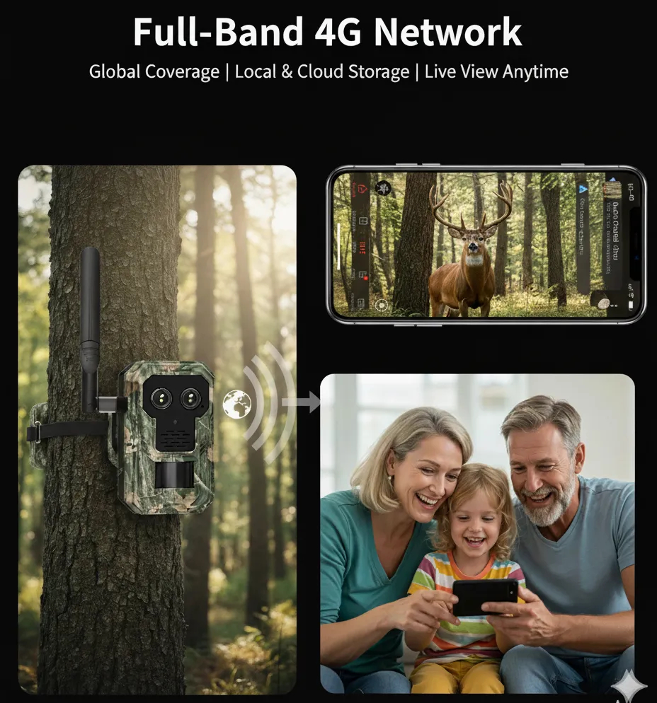 Nordowl Wildkamera – 14MP Dual-Objektiv 4G Wildtierkamera | 4-fach Zoom, Ultra HD Nachtsicht & intelligente Bewegungserkennung